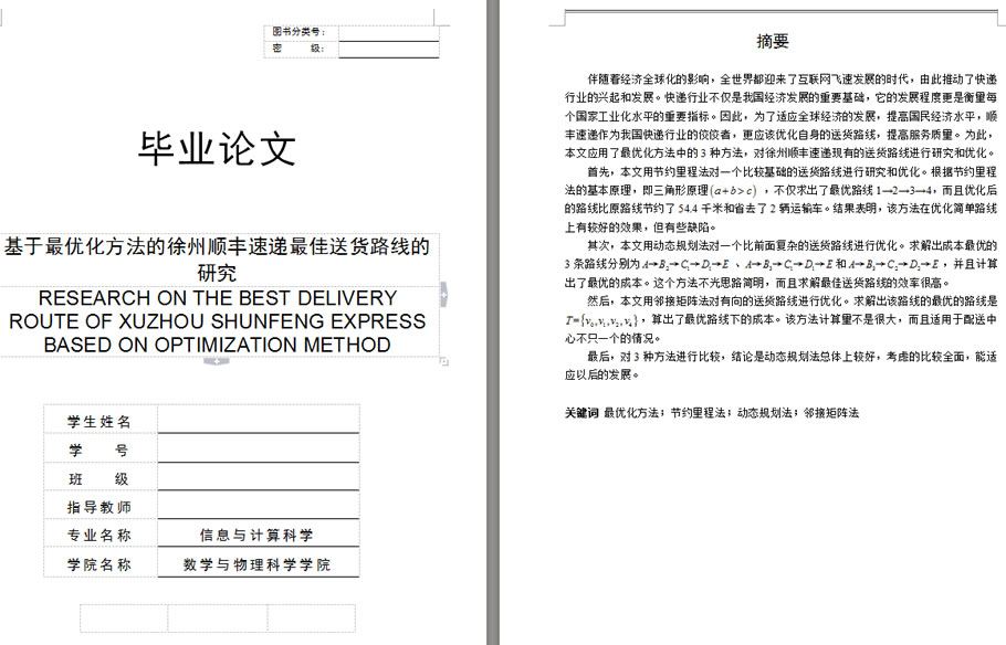 目录 摘要 Abstract 1 绪论-1 1.1 研究的背景及意义-1 1.2 国内外研究现状-1 1.2.1 国内现状-1 1.2.2 国外现状-2 1.3 研究思路-3 2 顺丰快递发展情况简介-5 2.1 顺丰速运简述-5 2.2 顺丰速运网点分布-5 2.3 顺丰速运配送中心的建立-5 2.3.1 配送中心简述-5 2.3.2 配送中心选址原则-6 2.4 徐州市顺丰速运的网点分布-7 3 徐州市顺丰速运送货路线分析-8 3.1 节约里程法-8 3.1.1 基本内容-8 3.1.2 基本思想-8 3.1.3 基本规定-8 3.1.4 基本步骤-9 3.2 动态规划法-9 3.2.1 基本内容-9 3.2.2 基本思想-10 3.2.3 基本结构-10 3.2.4 基本步骤-11 3.3 邻接算法-11 3.3.1 基本内容-11 3.3.2 基本思想-11 3.3.3 路线构造的方法-12 4 徐州顺丰速运送货路线模型-14 4.1 节约里程模型-14 4.2 动态规划模型-17 4.3 邻接矩阵模型-21 5 三种方法之间的比较-23 5.1 节约里程法的作用-23 5.2 动态规划法的作用-23 5.3 邻接法的作用-23 5.4 三种方法之间的优缺点-24 结论-25 致谢-26 参考文献-27 |