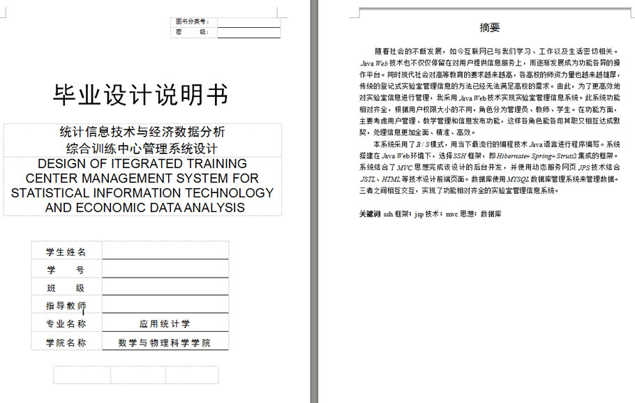 目录 摘要 Abstract 1 绪论-1 1.1 设计背景-1 1.2 设计意义和目的-1 1.3 国内外发展概况-1 1.4 设计主要工作和文章结构安排-3 2 系统分析-4 2.1 设计需求分析-4 2.2 设计可行性分析-4 2.2.1经济可行性分析-4 2.2.2技术可行性分析-4 2.2.3社会可行性分析-5 2.3 设计使用模式分析-5 3 相关技术介绍-6 3.1 Java Web的相关概念-6 3.2 Java语言-6 3.3 JSP技术-7 3.4 MYSQL数据库-7 3.5 JDBC技术-8 3.6 MVC思想和SSH框架-8 4 系统设计-11 4.1 系统设计思想-11 4.2 数据库设计-11 4.2.1 分析实体间对应关系-11 4.2.2 实体及其属性设计-12 4.2.3 建立数据库表-14 4.3 设计结构设计-17 4.3.1 系统功能模块划分-17 4.3.2 总体结构图-17 5 系统详细设计-19 5.1 用户登录模块-19 5.2 用户信息管理模块-21 5.3 个人信息管理模块-24 5.4 任务发布管理模块-26 5.5 作业管理模块-27 5.6 消息发送与接受管理模块-29 5.7 教师评分管理模块-30 结论-32 致谢-33 参考文献-34 附录-35 |